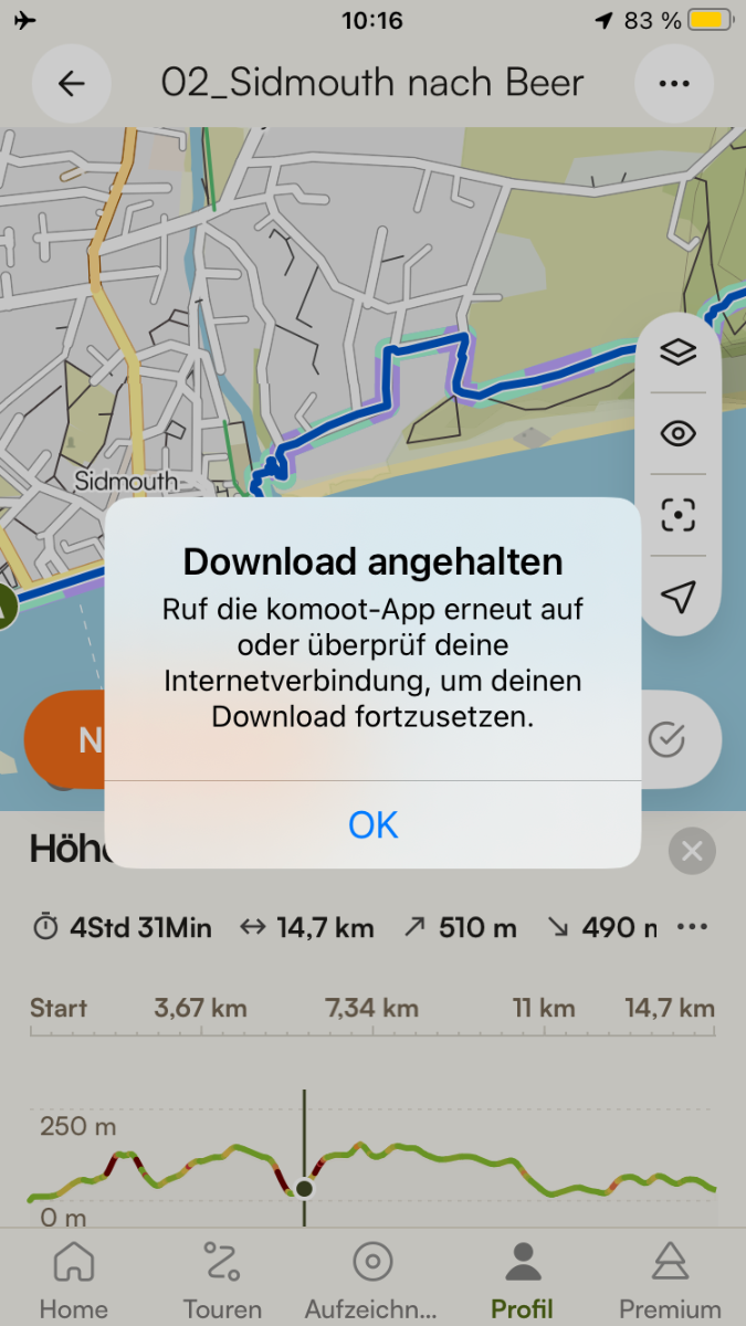 sja Geschrieben Montag um 18:15 Geschrieben Montag um 18:15 Ich habe mir wie immer zu Hause meine Touren heruntergeladen, damit ich sie offline verwenden kann. Habe mein Smarphone im Flugmodus unterwegs. Funktioniert seit Jahren, nun nicht mehr? Hab schon alles mögliche versucht. App aus wieder an, warten, dann erst in den Flugmodus gehen. Irgendwann bekomme ich eine Meldung „Download abgebrochen“. Dabei habe ich doch längst alles heruntergeladen. Nutze ein iPhone SE2. Was ist da los?